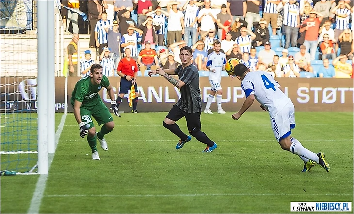Снова домашний матч полякам пришлось проводить в Гливицах, еще и погода подвела, шёл проливной дождь, из-за которого «Эсбьерг» опоздал на стадион и матч начался с 10-минутной задержкой. Погода не сыграла кому-либо на руку, команды так и не смогли поразить ворота друг друга и закончили матч нулевой ничьей. В ответной встрече «Эсбьерг» с первых минут побежал в атаку, но хожовяне отоборонялись и на 13-ой минуте сумели в одной из контратак заработать пенальти. К точке подошел Филип Стажиньски и открыл счет в матче. На 29-ой минуте хозяева сумели сравнять счет, но гостевой гол Стажиньского все еще выводил хожовян в следующую стадию. «Эсбьерг» продолжал атаковать и на 85-ой минуте добился своего, Марцин Пушич переиграл Каминского и вывел свой клуб вперед в двухматчевом противостоянии. С учетом пяти добавленных минут у хожовян было десять минут, чтобы спастись. Все уже сбросили со счетов подопечных Коцяна, но на 95-ой минуте угловой закончился ударом Лукаша Сурмы, который оказался совершенно один на дальней штанге. Сурма буквально внёс мяч в ворота и перевернул всё с ног на голову. Датчане успели только начать с центра поля, на большее им времени арбитр не дал.