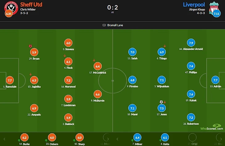 После матча "Ливерпуля" и "Шеффилд Юнайтед" в котором банда Клоппа одержала победу, прервав серию из четырех поражений, портал Whoscored традиционно опубликовал оценки игрокам каждой из команд.
