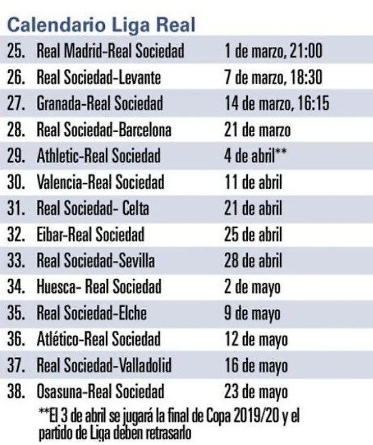 Перед «Реал Сосьедад» поставлен на задача занять место которое позволить играть в еврокубках, сейчас у «Реала» 41 очко и 5 месте в ЛаЛиге.