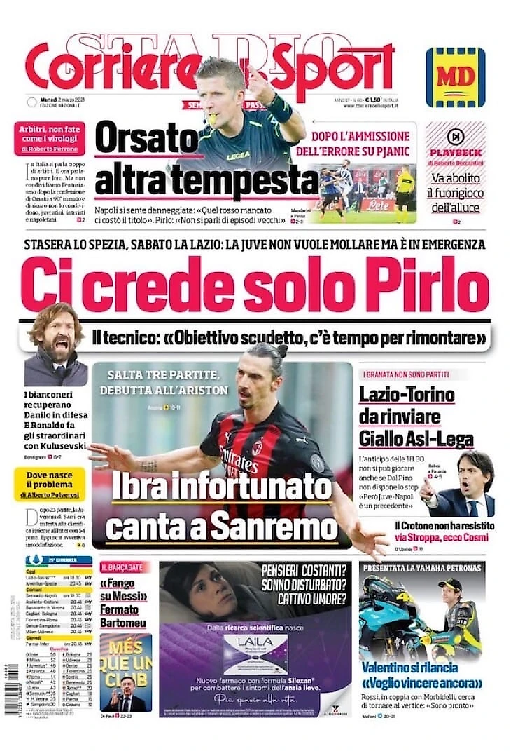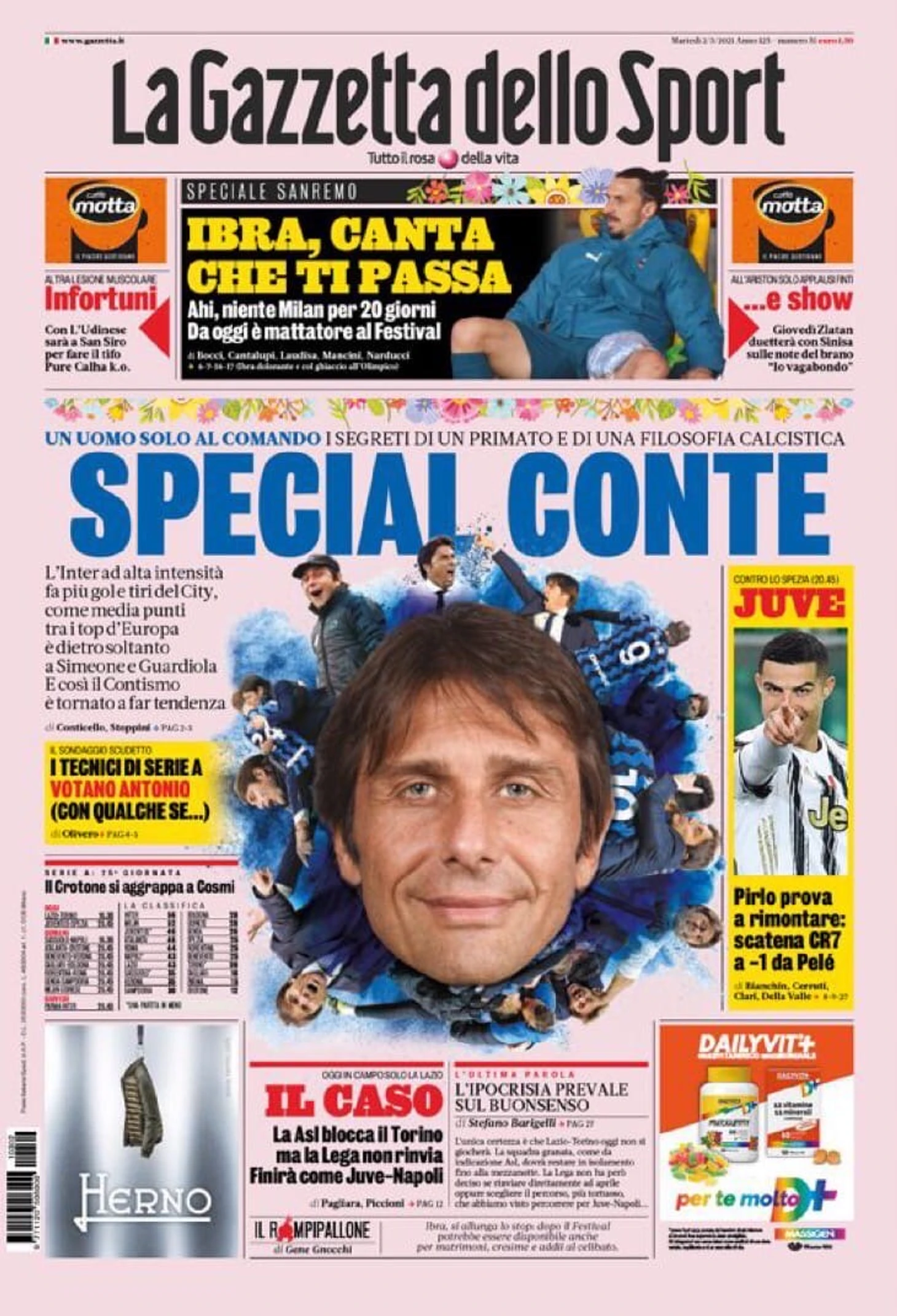 Сегодняшняя игра «Юве» со «Специей», скандал вокруг переноса матча «Лацио»-«Торино», а также старт Фестиваля Санремо с Иброй – в утреннем обзоре заголовков итальянских спортивных изданий в блоге «В гостях у Кальчо».