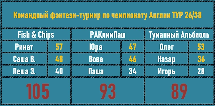 Два подряд поражения Туманного Альбиоля подпортили репутацию лидерам, но они все еще лидеры. Конкуренты подтянулись и возможно уже по итогам следующего тура РАКлимПаш отберет лидерство. А любые перемещения в таблице командника - это всегда интересно.