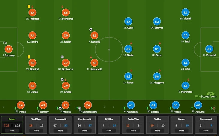 Шченсны потащил пенальти, Кьеза, Мората и Роналду забили по мячу.