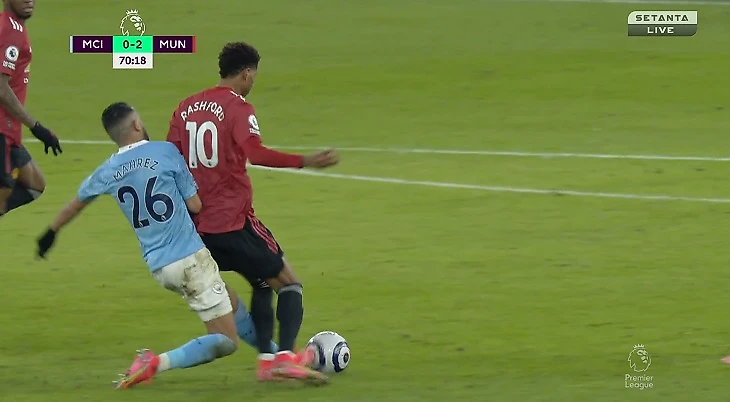 На 69-й минуте «МЮ» заработал угловой. Шоу навесил, но не очень удачно – Эдерсон выпрыгнул выше всех и забрал мяч в руки. И тут же вбросил на Мареза – алжирец рванул, вместе с ним бежали Де Брюйне, Стерлинг и Жезус.
