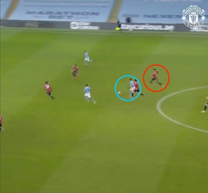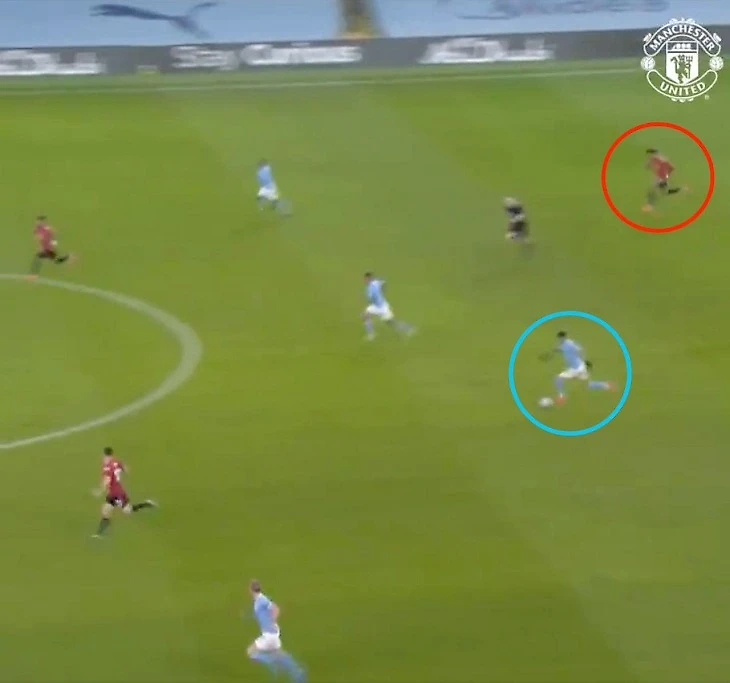 В защите «МЮ» почти никого не осталось: был Уан-Биссака, ближе к своим воротам были Джеймс и Фред, на шведском скоростном поезде возвращался Линделеф. Но резвее всех бежал Маркус Рэшфорд (простите за размытые скрины: эту электричку было сложно поймать).