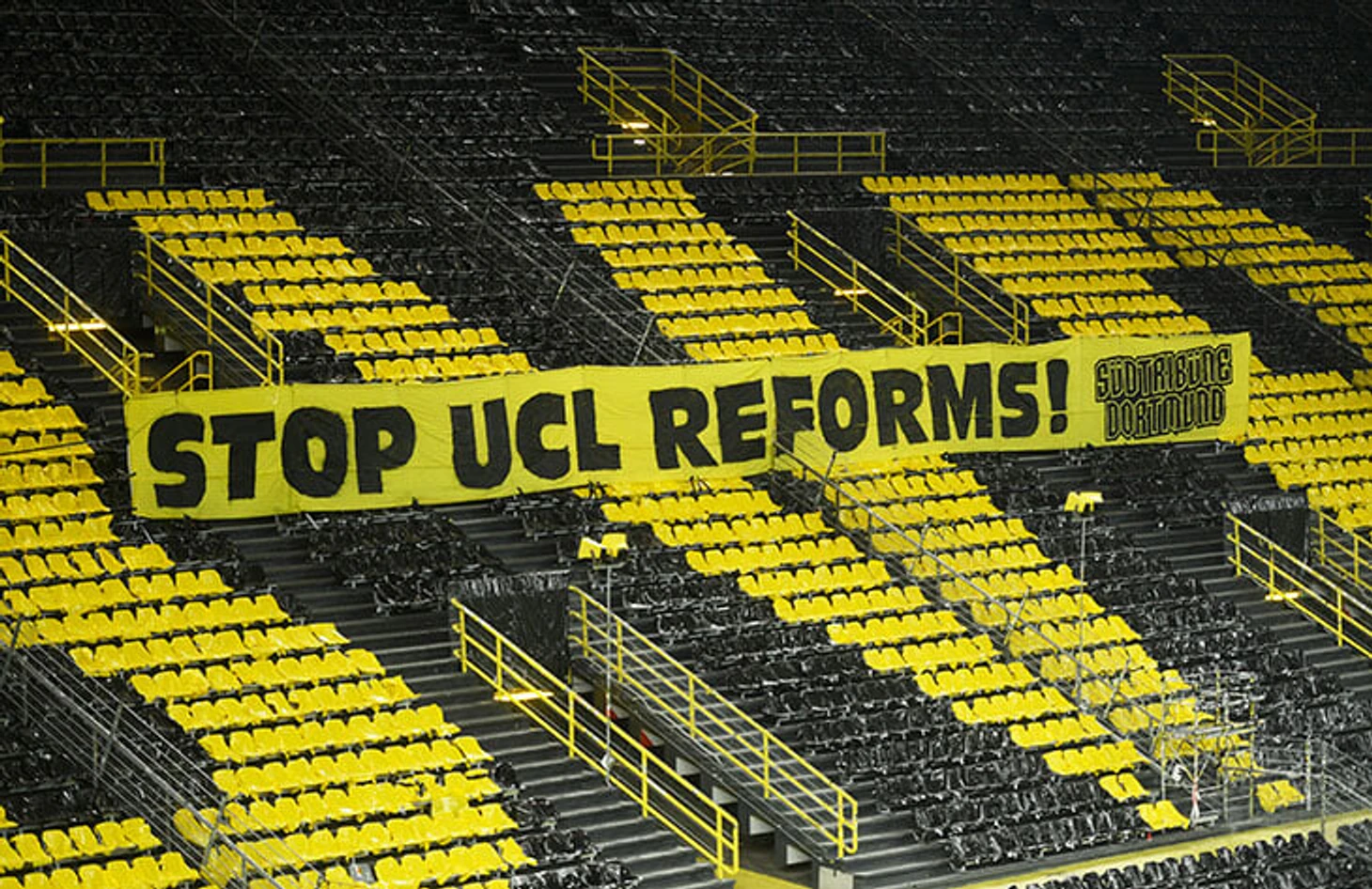 «Остановите реформы ЛЧ». Баннер дня на пустой фан-трибуне «Боруссии»