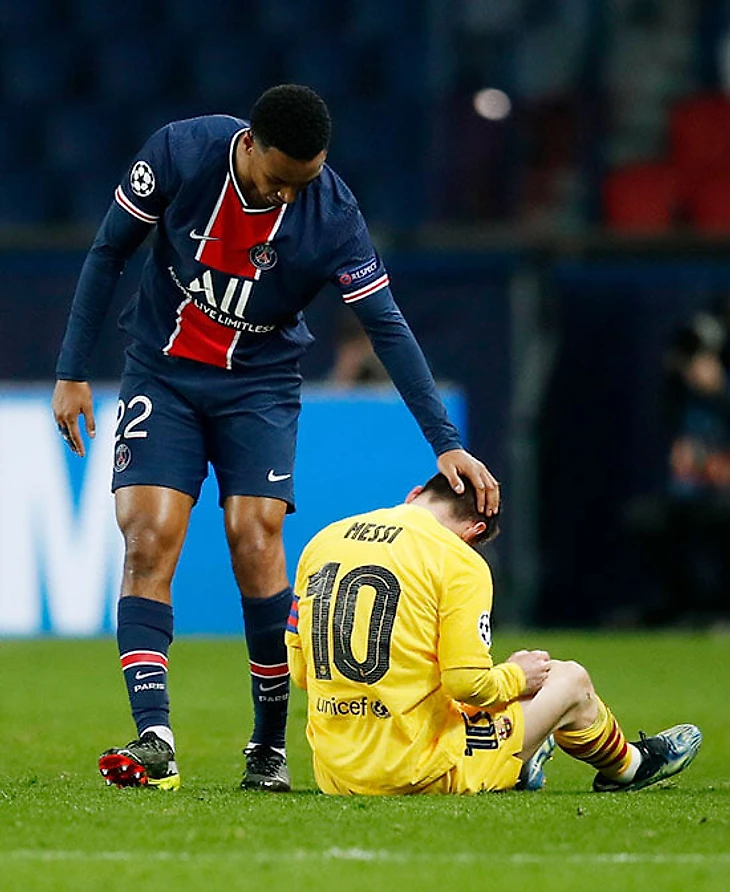 2021 год: крупные планы Месси против «ПСЖ»: попытка улыбнуться, объятия с Ди Марией и интригующий взгляд Почеттино после матча