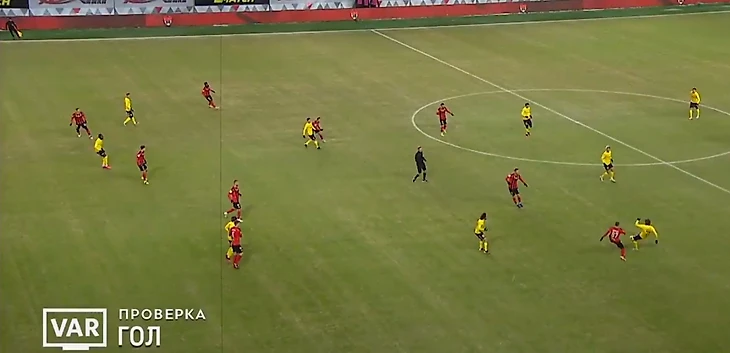 Зато на 73-й минуте судьи VAR взяли на себя ответственность за отмену гола в ворота ФК «Химки». При том, что момент не односложный, они даже не пригласили Лапочкина к монитору.