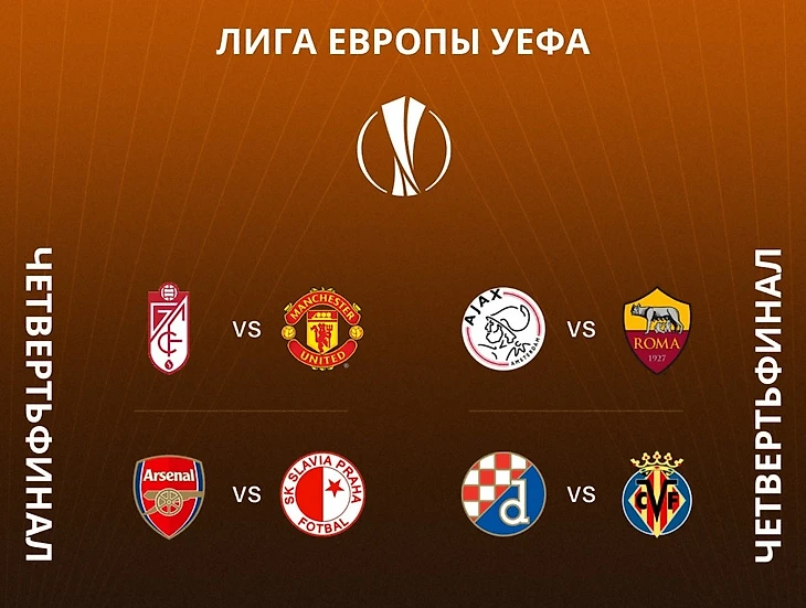 Аякс - Рома, самая яркая вывеска здесь и самая непредсказуемая. Если честно будет просто очень интересно посмотреть на это соперничество. Кто здесь фаворит, назвать не берусь, так как особо не слежу ни за Ромой, ни за чемпионатом Нидерландов, но думаю матчи предстоят очень интересные. Кстати победитель этой пары, попадает на победителя пары Гранада - Манчестер, что заставляет всех нас болеть за Манкунианцев, дабы увидеть топовый полуфинал.