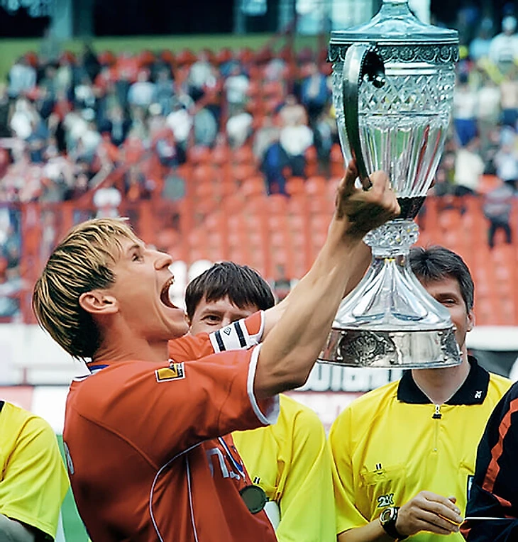 А Егор Титов модно красил волосы и весной 2003-го поднял Кубок России. Тогда еще никто не знал, что «Спартак» останется без трофеев на 15 лет.