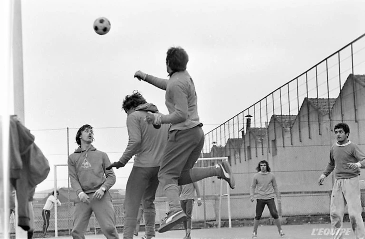 Нужно чудо, настало время для мужества! Предматчевый снимок героев. Спустя мгновения они начнут матч, навсегда вписанный золотыми буквами в историю французского футбола. На снимке стоят: Иван Чуркович, Жерар Жанвийон, Жерар Фаризон, Доменик Батеней, Освальдо Пьяцца, Кристиан Лопез, Кристиан Синагель; сидят: Доменик Рошто, Жан-Мишель Лярке, Эрве Ревелли и Кристиан Сарраманья.