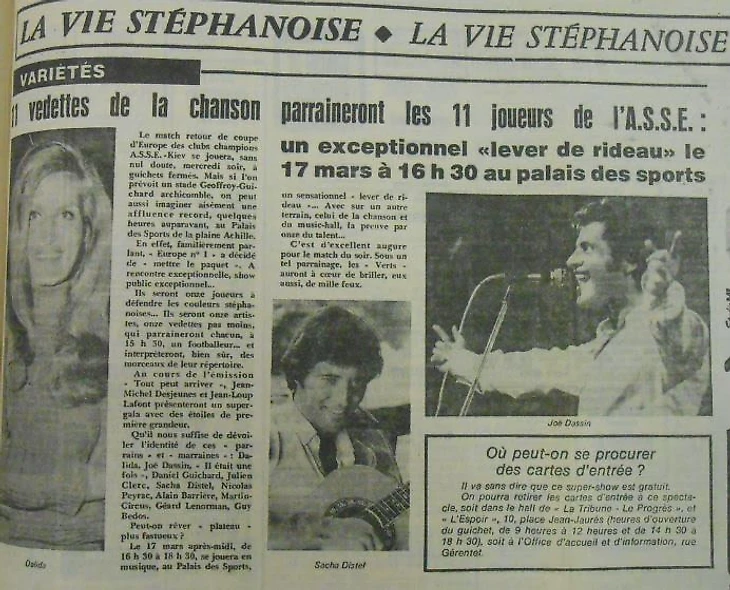 В 16.30 на всю Францию команда из 11 известных музыкантов (Dalida, Joe Dassin, Daniel Guichard, Julien Clerc и пр.) в рамках программы “Tout peut arrive” исполняет специальную песню в поддержку Сент-Этьенна.