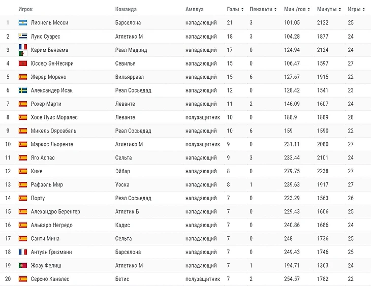 Бомбардиры Ла Лиги 2020/21. Топ-20