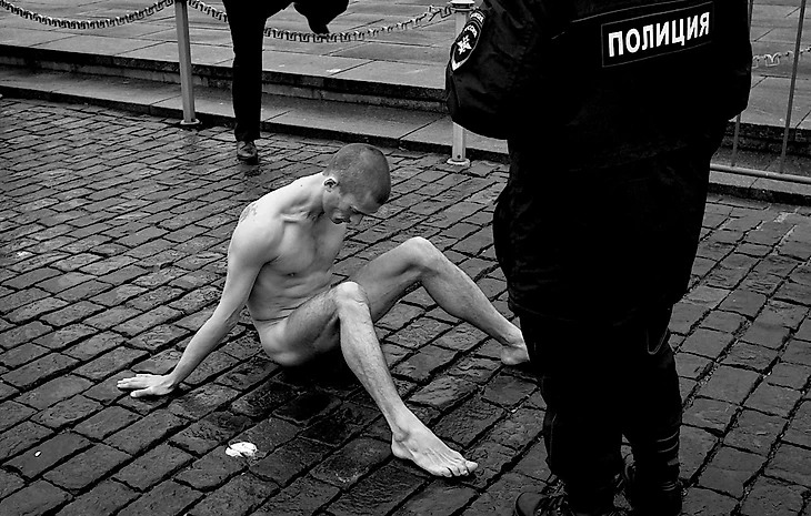 Спустя 22 года художник Пётр Павленский прибил свою мошонку к той же Красной площади, олицетворяя всеобщую гражданскую апатию и индифферентность общества.