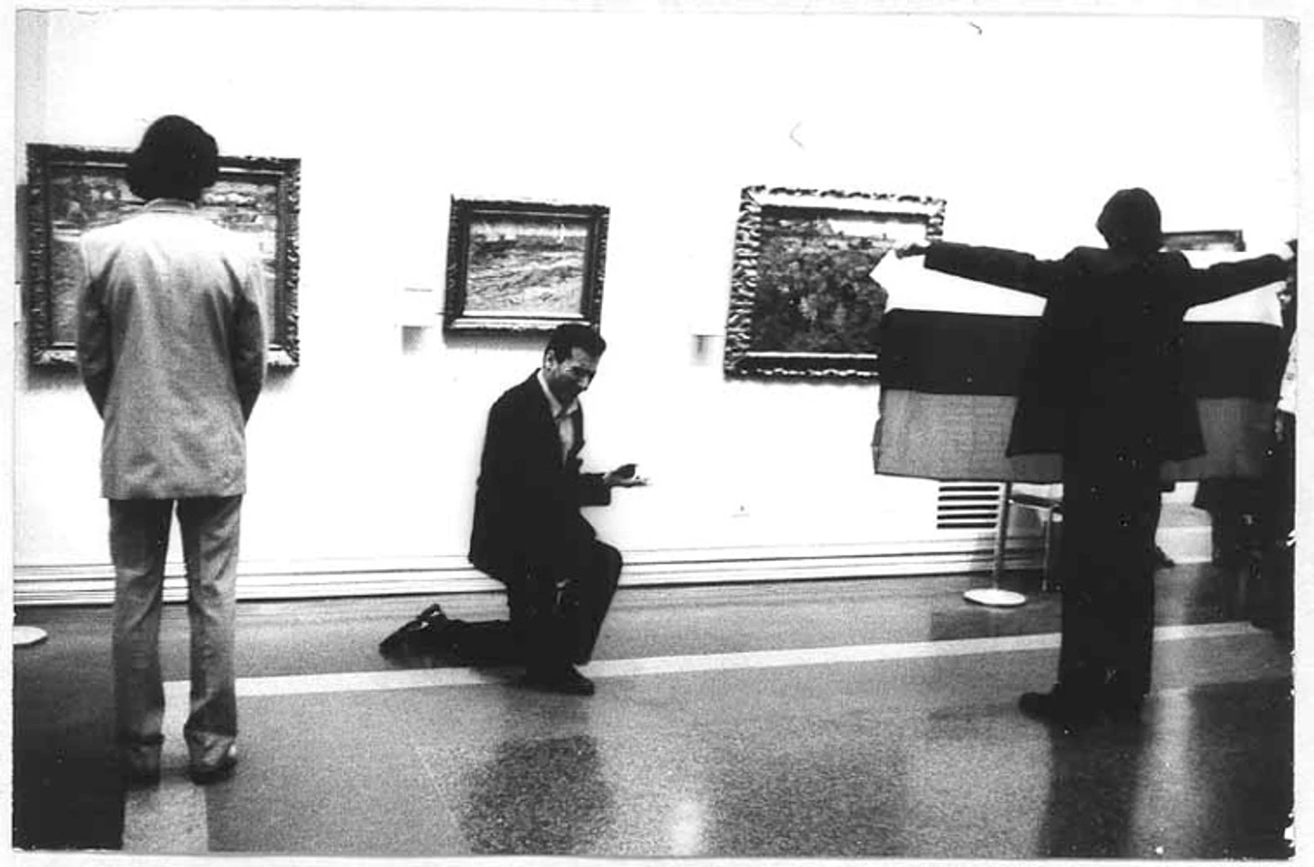 Александр Бренер совершает акт дефекации опустившись на одно колено