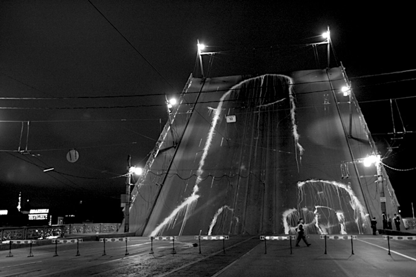 Следуя за этим клубком загадочных взаимосвязей мы оказываемся в другой Венеции — Северной, более известной как Санкт-Петербург. На дворе 2010 год, день рождения Че Гевары (гуглим, не стесняемся), на дворе теплая белая ночь, и в этот приятный момент в нашей истории всплывает второй ***, вернее не всплывает, а поднимается, я бы даже сказал, вздымается, колоссальных размеров член, нарисованный членами (простите за тавтологический каламбур) арт-группы «Война» на разводном Литейном мосту, аккурат перед местным отделением (и вновь в эфире!) ФСБ. Акция, так и называлась «*** в ПЛЕНу у ФСБ».