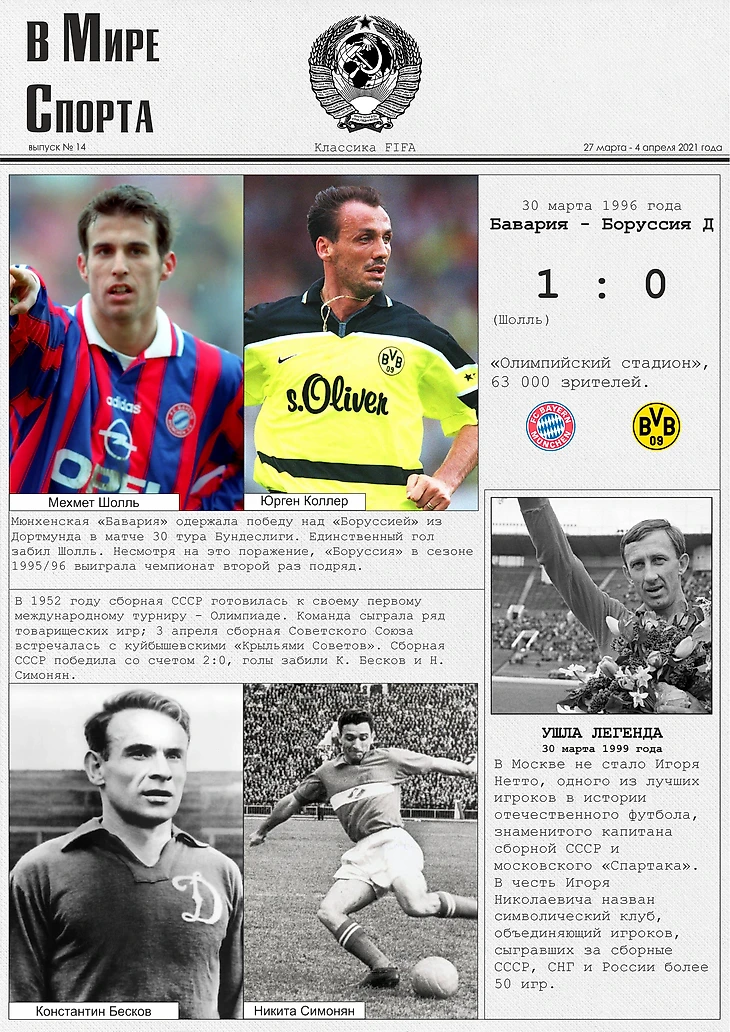 Уважаемые читатели, предлагаем вам окунуться в историю мирового футбола, вспомнить события , которые происходили в футболе в разные исторические эпохи в период с 27 марта по 4 апреля. События представлены в виде импровизированной газеты.