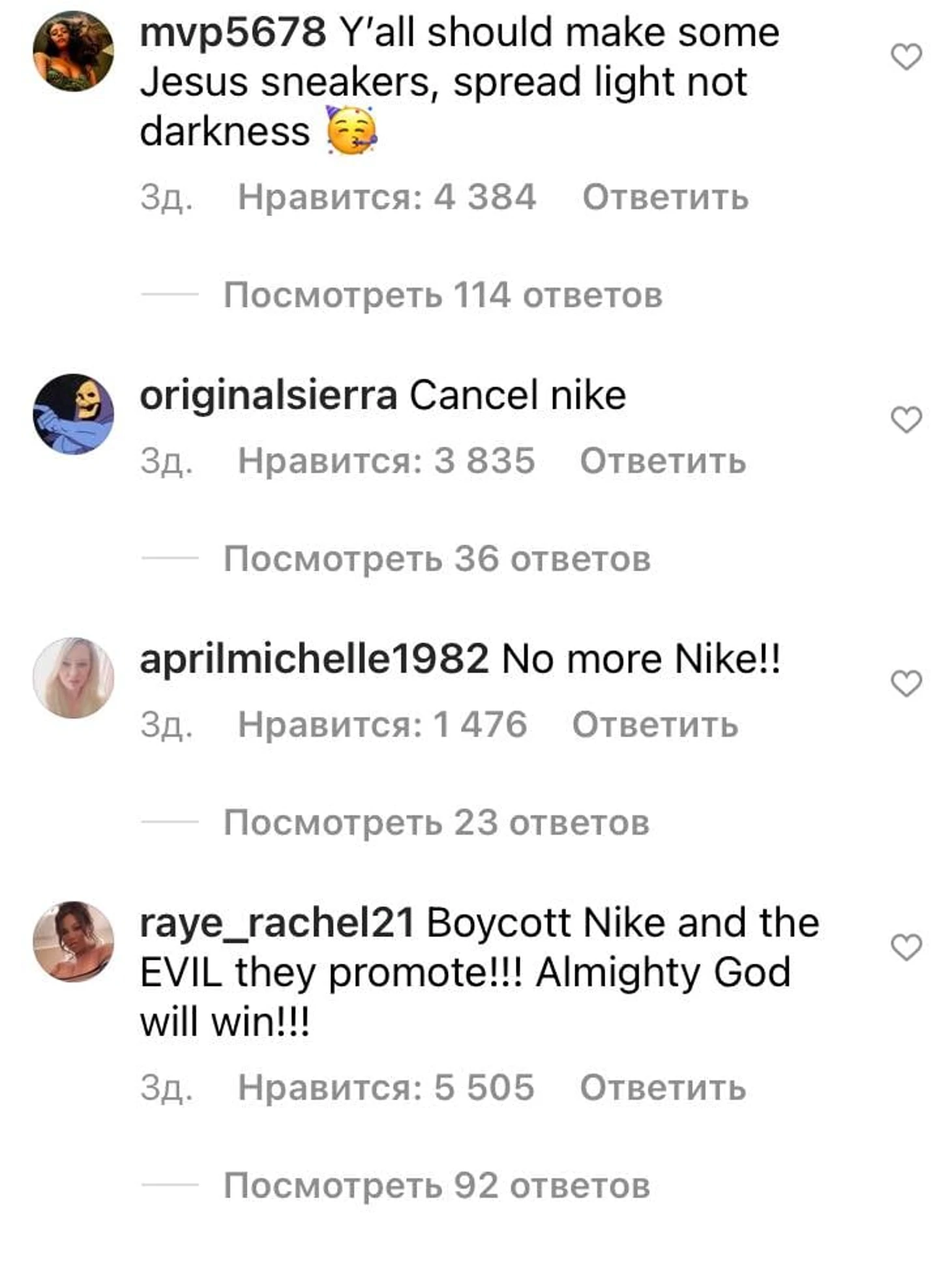 Кроссовки поступили в продажу в понедельник по цене 1018 долларов, все 666 пар (ну, вы поняли) моментально раскупили. В соцсетях многие возмутились и призывают бойкотировать Nike – хотя компания не имеет никакого отношения к этой модели.