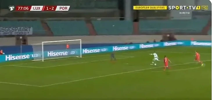 Португалец пробил на силу во вратаря и не реализовал момент. Многие говорят о плохой форме нападающего, ведь раньше он с легкостью пользовался такими возможностями.