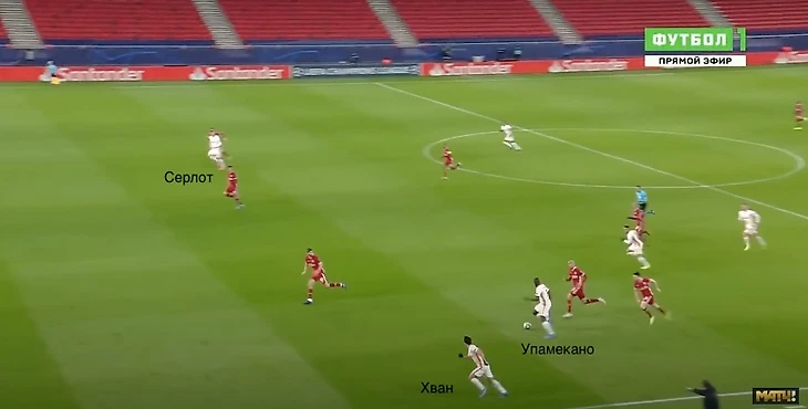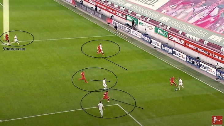 Вот пример из прошлого сезона. Упамекано, разогнавшись до 35 км/ч (за секунду пробежал 10 метров), не только догнал форварда «Гладбаха» Маркуса Тюрама, но и заблокировал опасный удар.