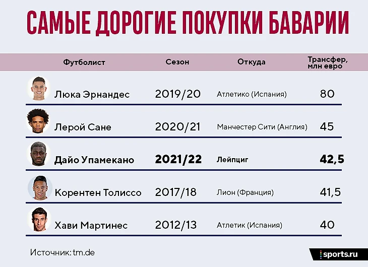 Чтобы получить Упамекано, мюнхенцам пришлось активировать сумму выкупа. Так Дайо вошел в тройку самых дорогостоящих трансферов «Баварии».
