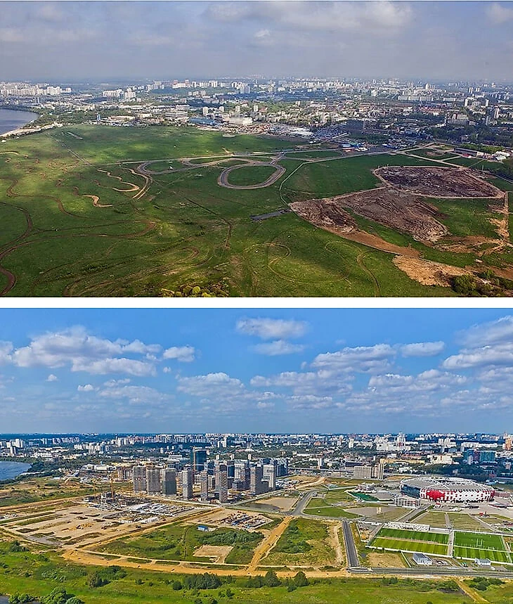 Утверждения Федуна не совсем корректны. Действительно, рядом с кварталами «Тушино-2018» реализуется проект «Ростех-Сити» – офисный квартал корпорации «Ростех» и жилой комплекс Alia. Их возводит компания «Ви Холдинг» Виталия Мащицкого (близкого друга главы «Ростеха» Сергея Чемезова) на деньги Российского фонда прямых инвестиций (РФПИ). Однако этот проект никогда не был частью «Тушино-2018» Федуна и занимает значительно меньшую площадь – 65 гектаров против 160 га у владельца «Спартака».