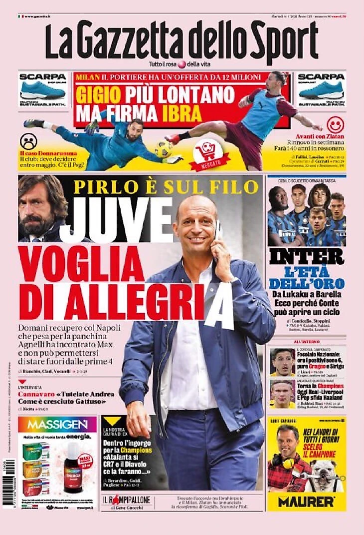 Опасения из-за Ковида перед матчем «Ювентуса» и «Наполи», возможное возвращение Аллегри в «Юве», планы «Интера» на Конте и Лукаку, а также продление контракта Ибры с «Миланом» – в утреннем обзоре заголовков итальянских спортивных изданий в блоге «В гостях у Кальчо».