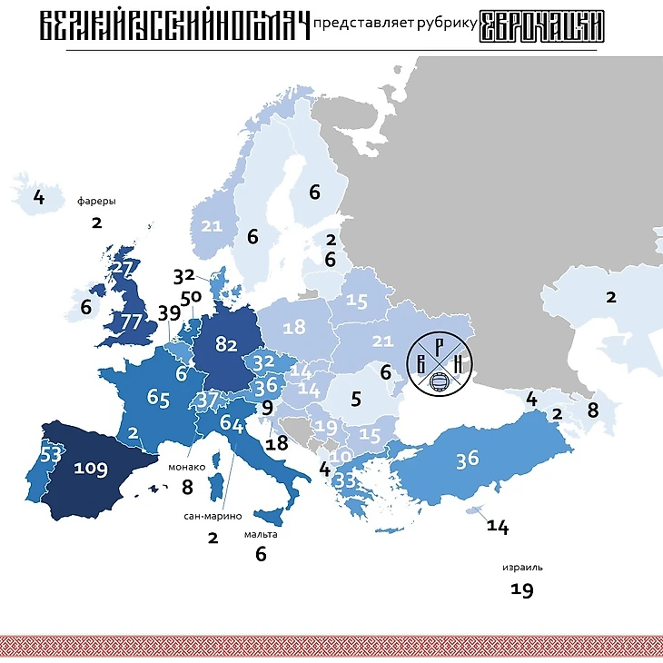 8 апреля 2021, 09:13 1 мин. ЕврочашкиHEKTO_KАвтор6 подписатьсяРубрика #Еврочашки представляют карту количества игр с командами стран Европы во всех еврокубках.