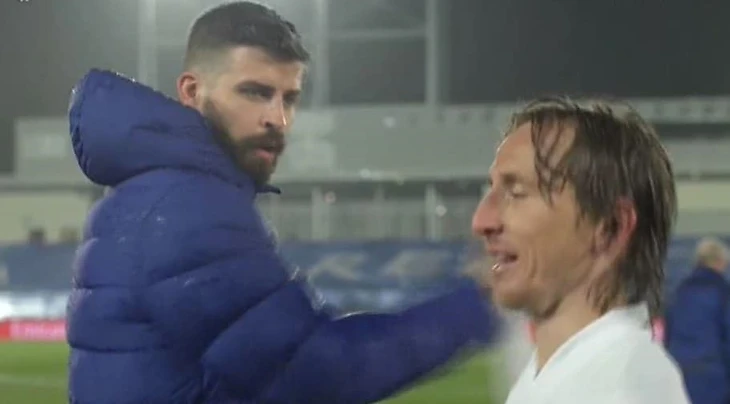 В этот момент на поле пересеклись Модрич и Пике, вот какой диалог у них состоялся.