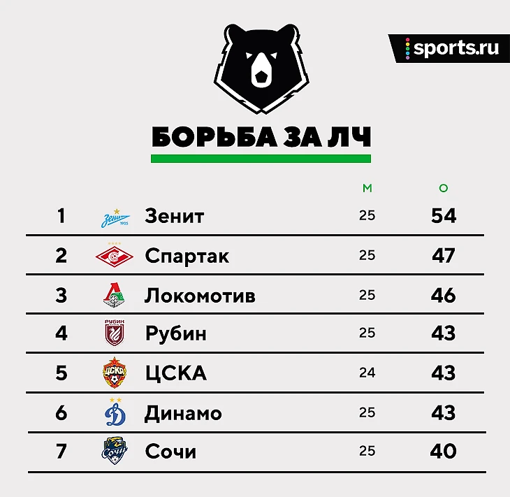 Понятно, что в групповом этапе окажется «Зенит» (54 очка). На второе место, которое дает право на 3-й квалификационный раунд, больше всего шансов у «Спартака» (47 очков) и «Локо» (46). Но ЦСКА (43 очка) еще играет в понедельник с «Ротором». В случае победы команда Олича тоже в гонке.