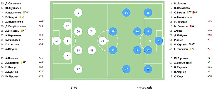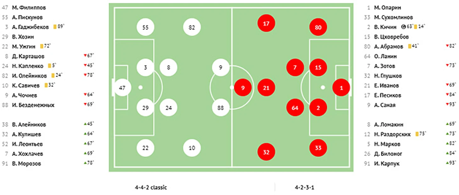 Удаления: Божин («Крылья Советов», 87, 2-я ж.к.), Витюгов («Крылья Советов», 90+).