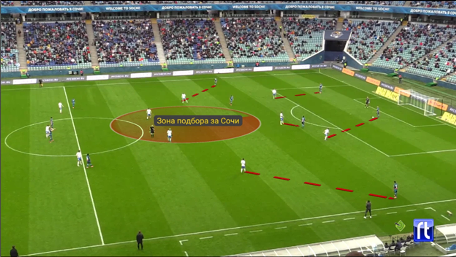 Проанализировав территорию контроля «Сочи», можно сделать вывод, что каждый игрок команды активно и организованно принимает участие как в оборонительных действиях команды, так и при атаке.