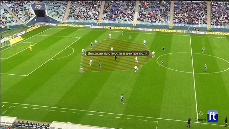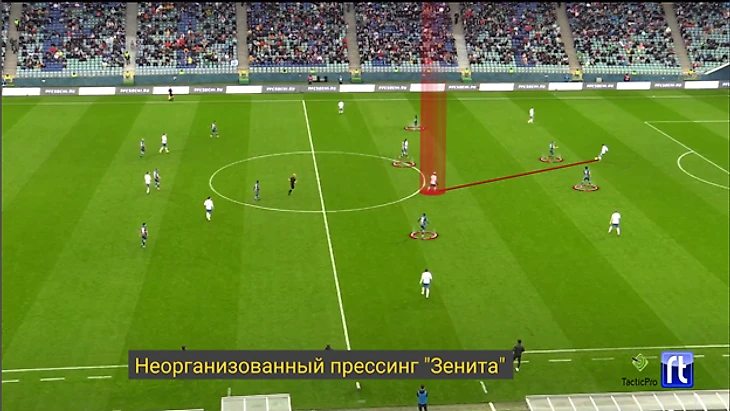 Для сравнения, действия в обороне, одной из самых прессингующих команд чемпионата во встрече с «Зенитом», выглядели следующим образом: