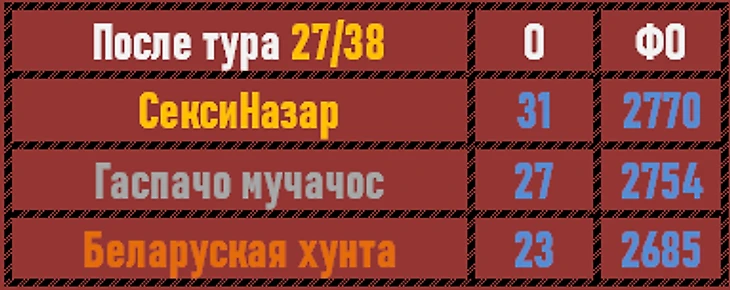 Разрыв между СН и ГМ за данный отрезок возрос с 3 до 4,5 баллов, но туров до конца чемпионата еще предостаточно!