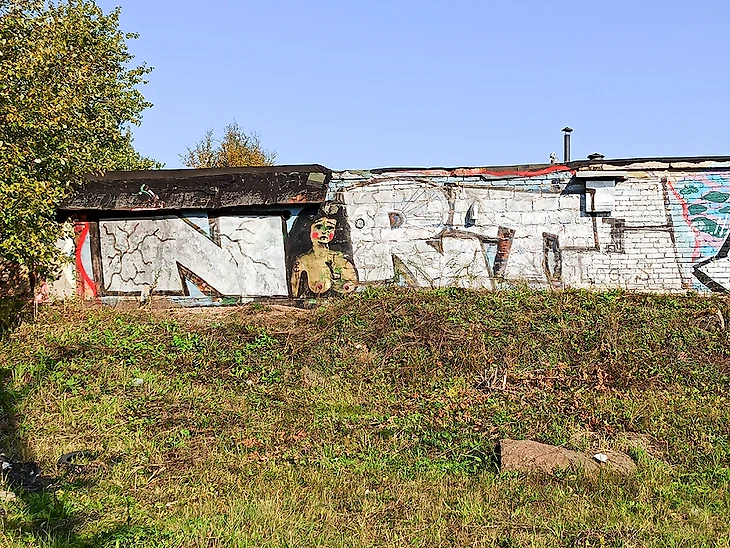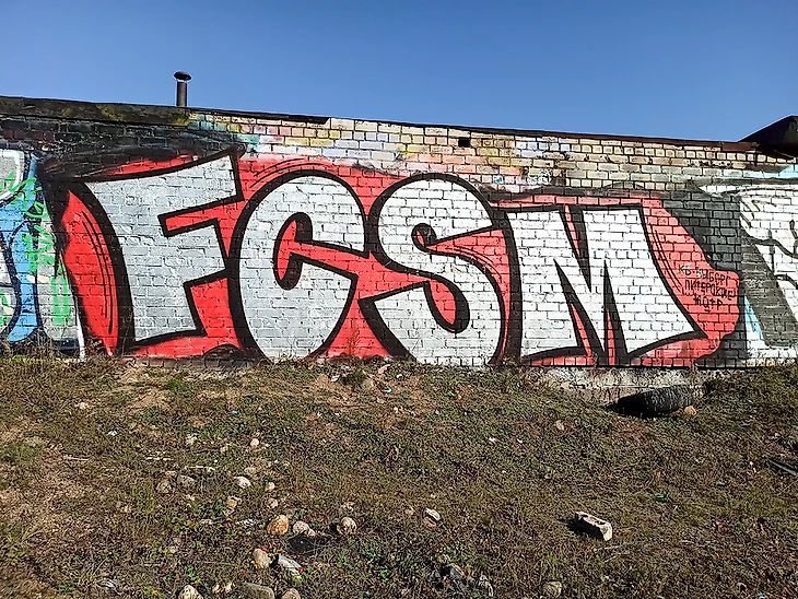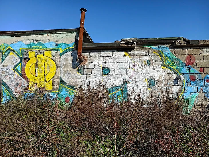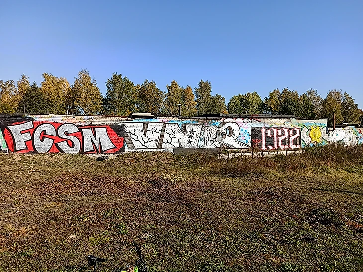 Потом проехался до одного места, которое я видел много раз из поезда – это несколько граффити вдоль железной дороги, где местные суппортёры выразили свою приверженность Спартаку из Москвы и Фавориту из Выборга.