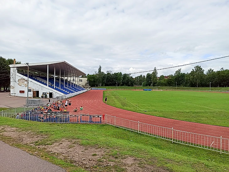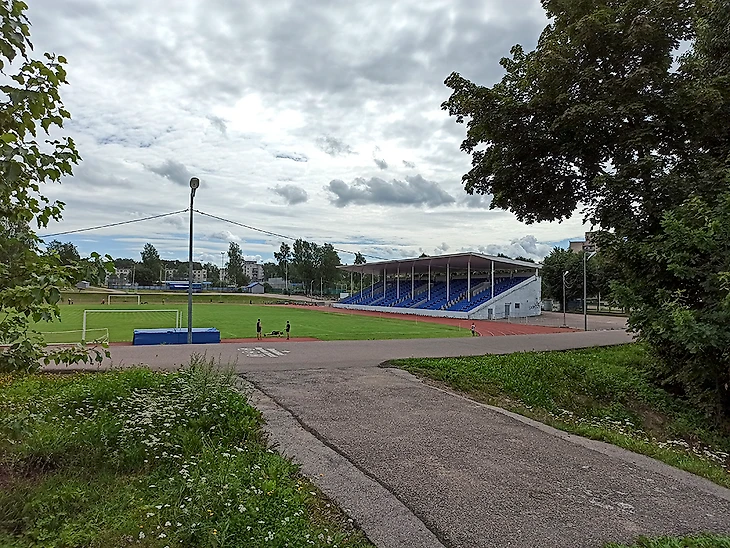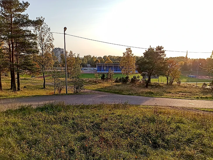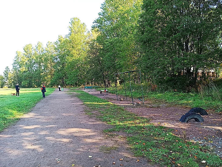 Т.к. в Выборге я уже был много раз и на стадионе Авангард я уже бывал, правда всё-время без матчей, и теперь меня интересовал обзор двух других относительно крупных стадионов – «Авиатор» и «Локомотив». Судя по отзывам на Яндексе - первый сейчас ассоциируется скорее не со спортивными состязаниями, а с собачьими, т.к. о самом стадионе нет ни слова, зато много отзывов о собачьих выставках, проводившихся здесь. И действительно, по приезду я увидел заросшее поле и несколько сооружений для дрессировки собак.