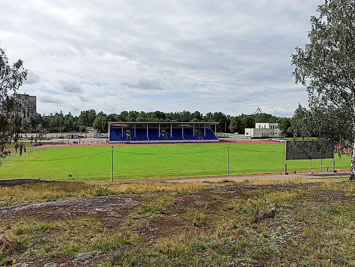 Недалеко от башни находится стадион «Локомотив». С бОльшими следами жизни, но на данный момент возможно закрытый из-за короновируса или ещё какой-то херни. На стадионе находилось пять человек, поле настоящая деревенская площадка, с одной из сторон возвышается невысокая скала, сидя на которой теоретически можно смотреть футбол.