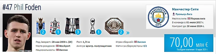 Фоден очень талантливый игрок, но пока он всё же не раскрыл весь свой потенциал. Парню всего 20 лет, а у него уже за плечами 115 матчей за основу Манчестер Сити. В этом сезоне он стал получать больше игровых минут, чем раньше. Уже есть 6 матчей за главную сборную Англии.