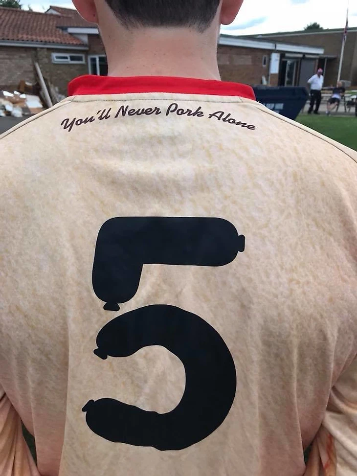 Если вас не удивил передний план формы, то просто посмотрите — они даже номер игрока представили в виде сосисок, а также добавили забавную фразу: You’ll Never Pork Alone («Ты никогда не будешь свининой»).