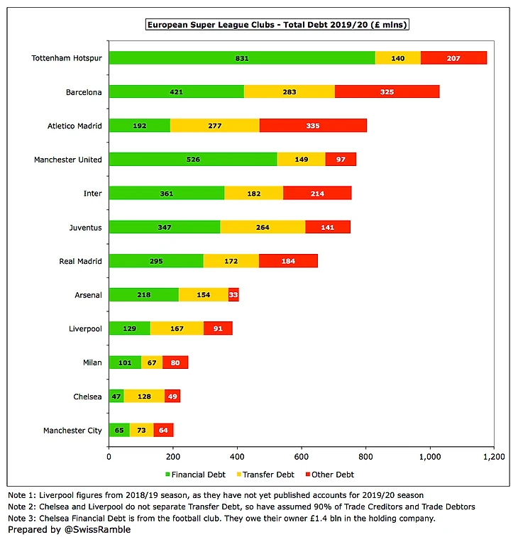 Или вот – суммарные убытки 6 английских клубов из Суперлиги за последние 12 сезонов.