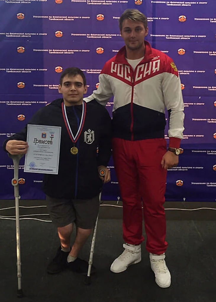 А потом я стал замечать, что на улицах много людей с инвалидностью. Первый парень, которого я стал тренировать, – Мирослав. Он был студентом первого курса ПетрГУ, у него синдром каудальной регрессии: ходит на костылях, у него деформированы ноги. Инвалидность с рождения. Я начал с ним заниматься, и у него пошли большие результаты. Из-за того, что он ходит на костылях, а ножки у него маленькие, в руках у него большая сила. Он начал жать штангу.
