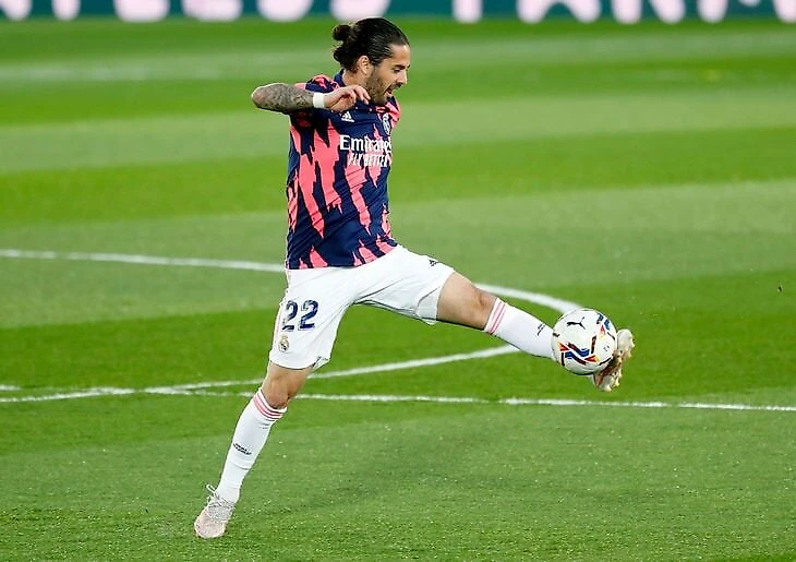 А иногда – через смещение флангового защитника (в данном случае правый защитник Вальверде смещается, а вингер Асенсио держит его позицию):