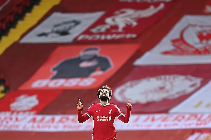 10 апреля. И здесь главный цвет – красный. Без зрителей задний план спортивных фотографий стал скучнее, но в этом праздновании Салаха все сошлось.