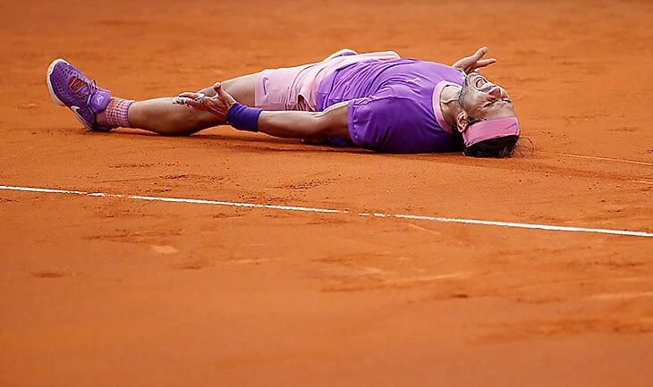 25 апреля. Рафаэль Надаль после тяжелейшей победы над Циципасом в финале турнира в Барселоне»