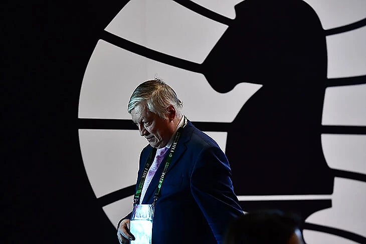 19 апреля. 12-й чемпион мира Анатолий Карпов и его метафорическая тень за просмотром турнира претендентов в Екатеринбурге