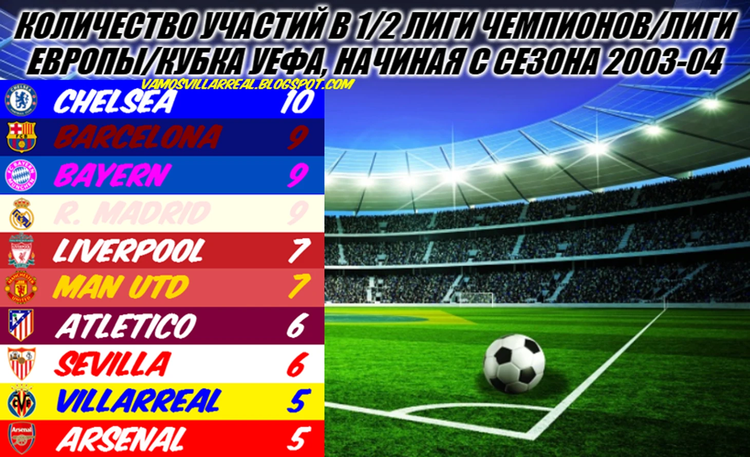 Как видим, Вильярреал чётко соблюдает традицию, начатую в 2006-м: раз в 5 лет стабильно выходит в еврокубковый полуфинал.