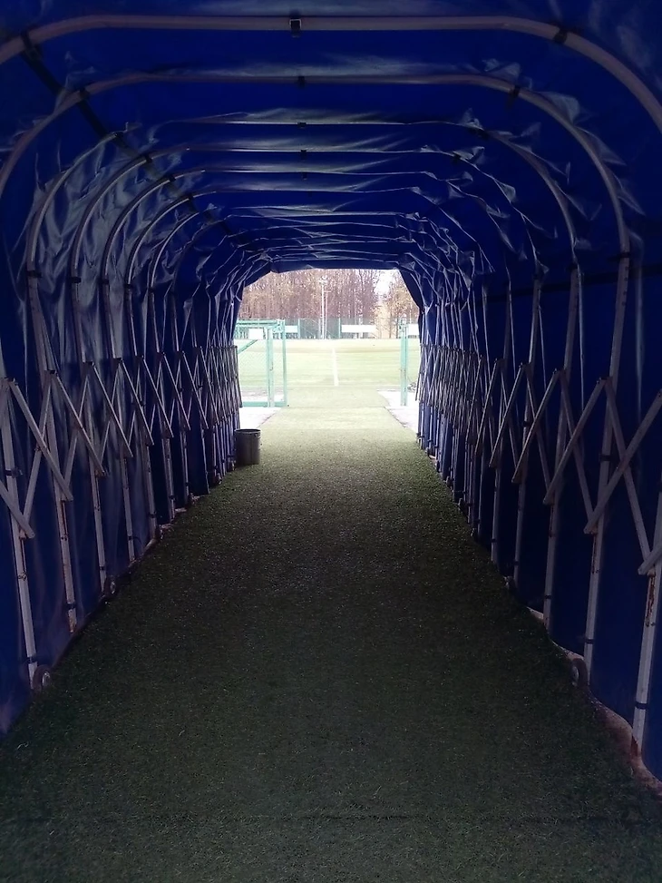 Однако тяга к исследованиям и наблюдательность помогли отыскать лазейку, через которую внутрь чаши (назовём это так) попасть удалось. Это – барабанная дробь – туннель, через который игроки выходят на поле! Признаюсь, было необычно пройти путём игрока областного чемпионата, но, правда, отправиться не на поле, а на сидячие места.