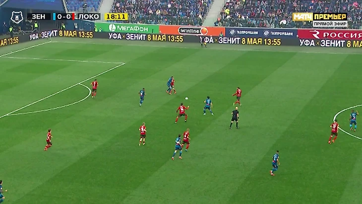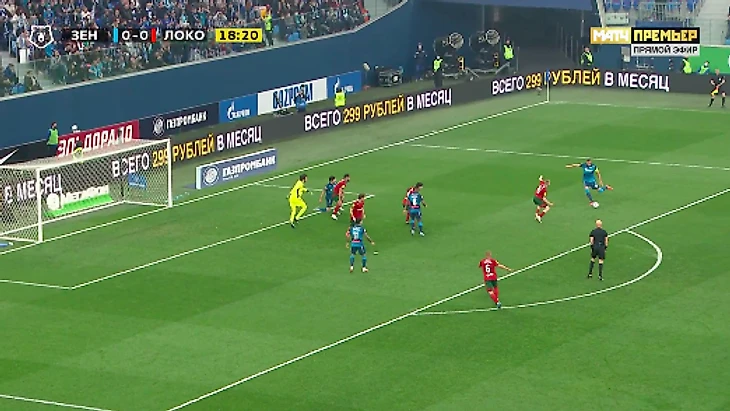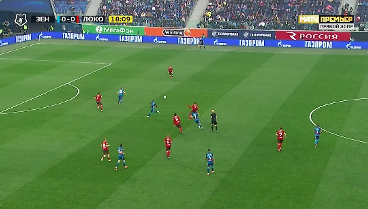 В начале атаки форвард «Зенита» пошел в единоборство с Мачеем Рыбусем.