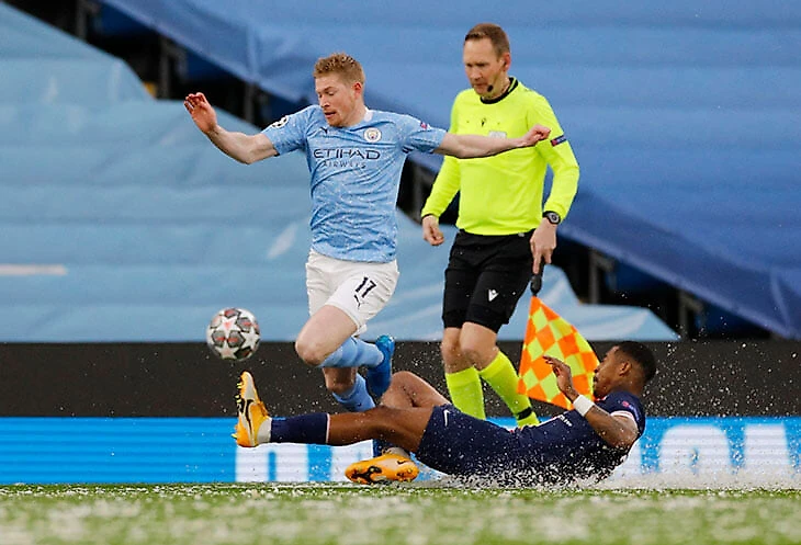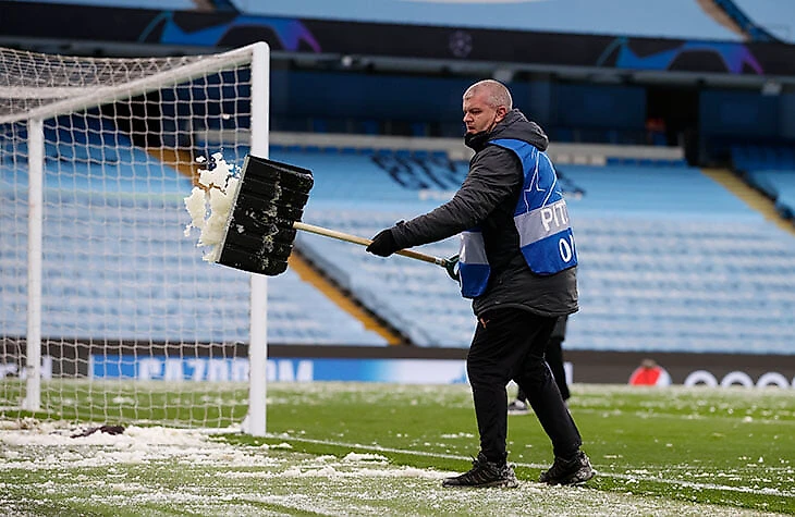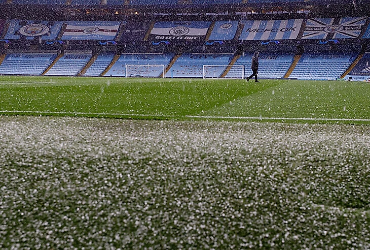 «Этихад» за несколько минут до старта матча «Сити» – «ПСЖ» выглядел непривычно для полуфинала ЛЧ. Когда-нибудь за финал турнира рубились в такую погоду? Всему виной циклон, который притащил холодный воздух и осадки.
