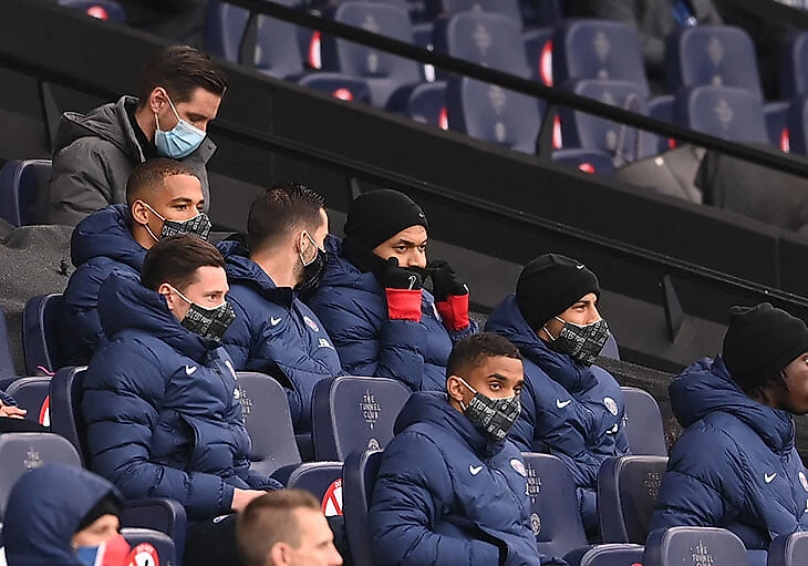 Мбаппе начал матч в шапке и куртке – сегодня он запасной.