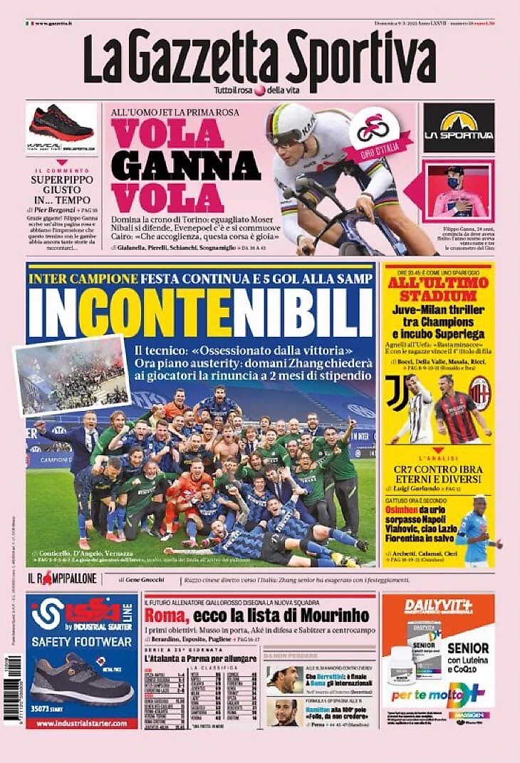 Безудержные. Заголовки Gazzetta, TuttoSport и Corriere за 9 мая